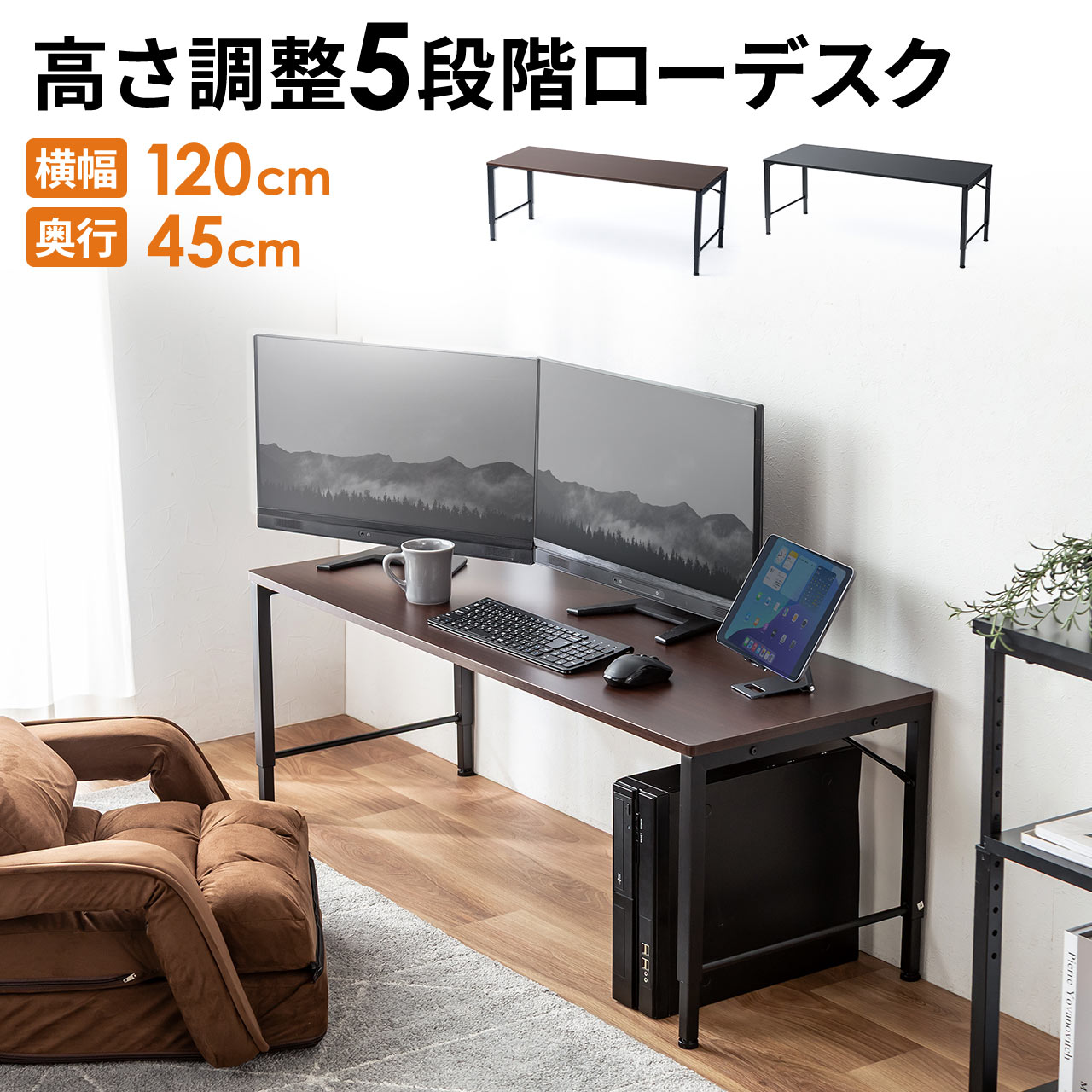 ローデスク 幅120×奥行45×高さ38cm/41cm/44cm/47cm/50cm モニターアーム対応 タップ受け付き ゲーミングデスク ブラック 100-DESKL026