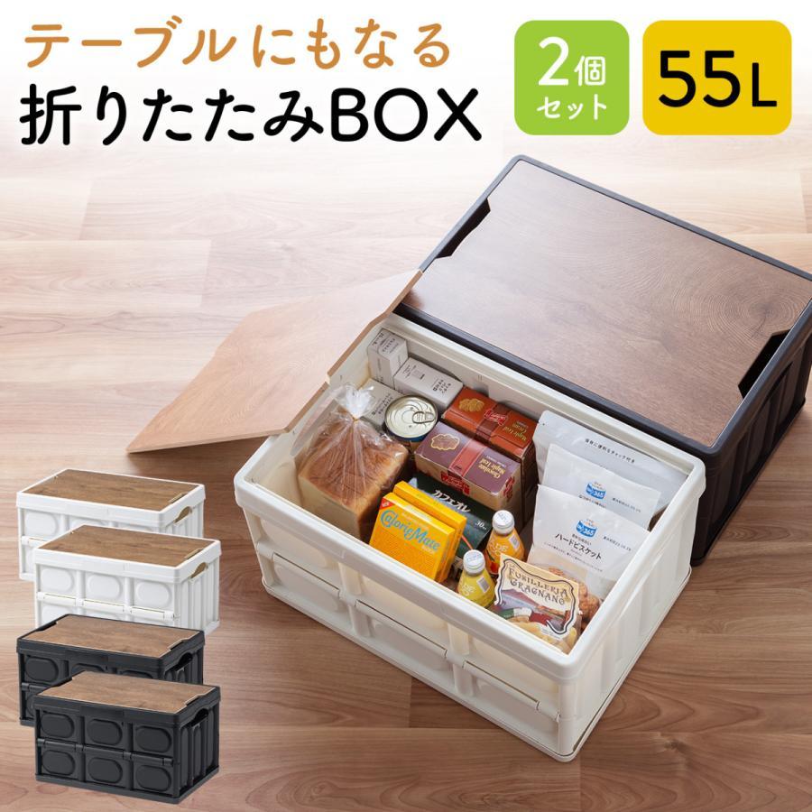 折りたたみ コンテナ 折り畳み 収納ボックス 2個セット フタ付き 55L 蓋付き テーブル アウトドア 屋外 軽量 おしゃれ 畳める コンテナボックス 100-FC002-2