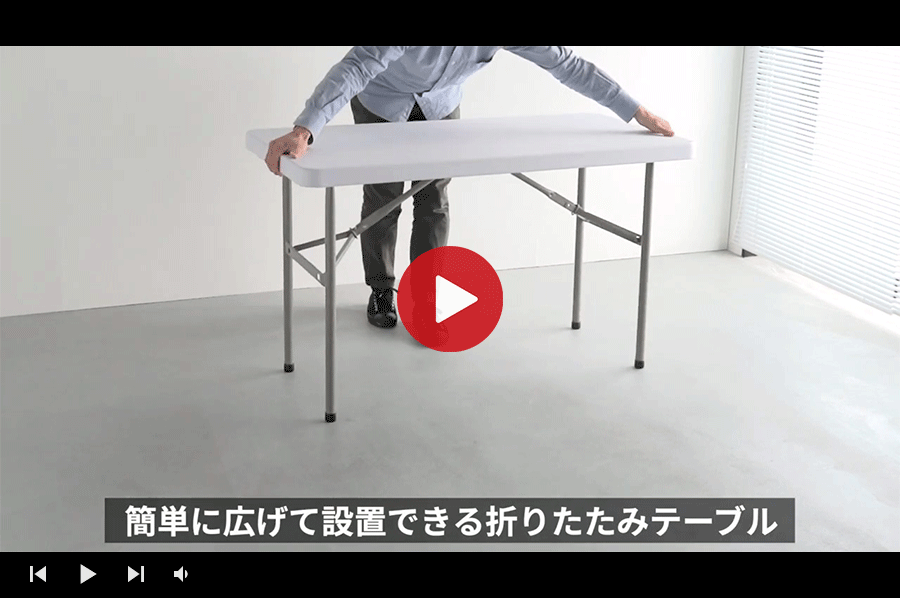 水や油をはじく折りたたみ式の樹脂製天板テーブル。コンパクトに折りたたんで省スペースに収納可能。屋内外どこでも使うことができるデスク。イベントに最適なテーブル。持ち運びしやすい軽量仕様。届いてすぐに使える完成品でのお届け。【WEB限定商品】