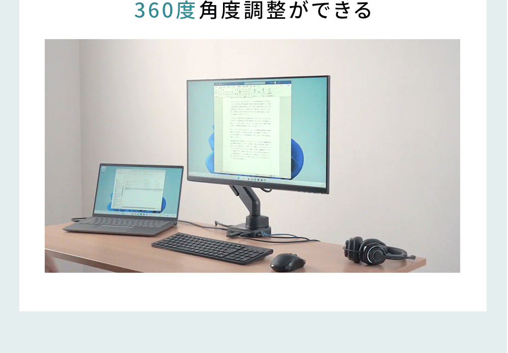 ※設置するモニタにより、上下左右の角度調節範囲が通常より制限される場合があります。