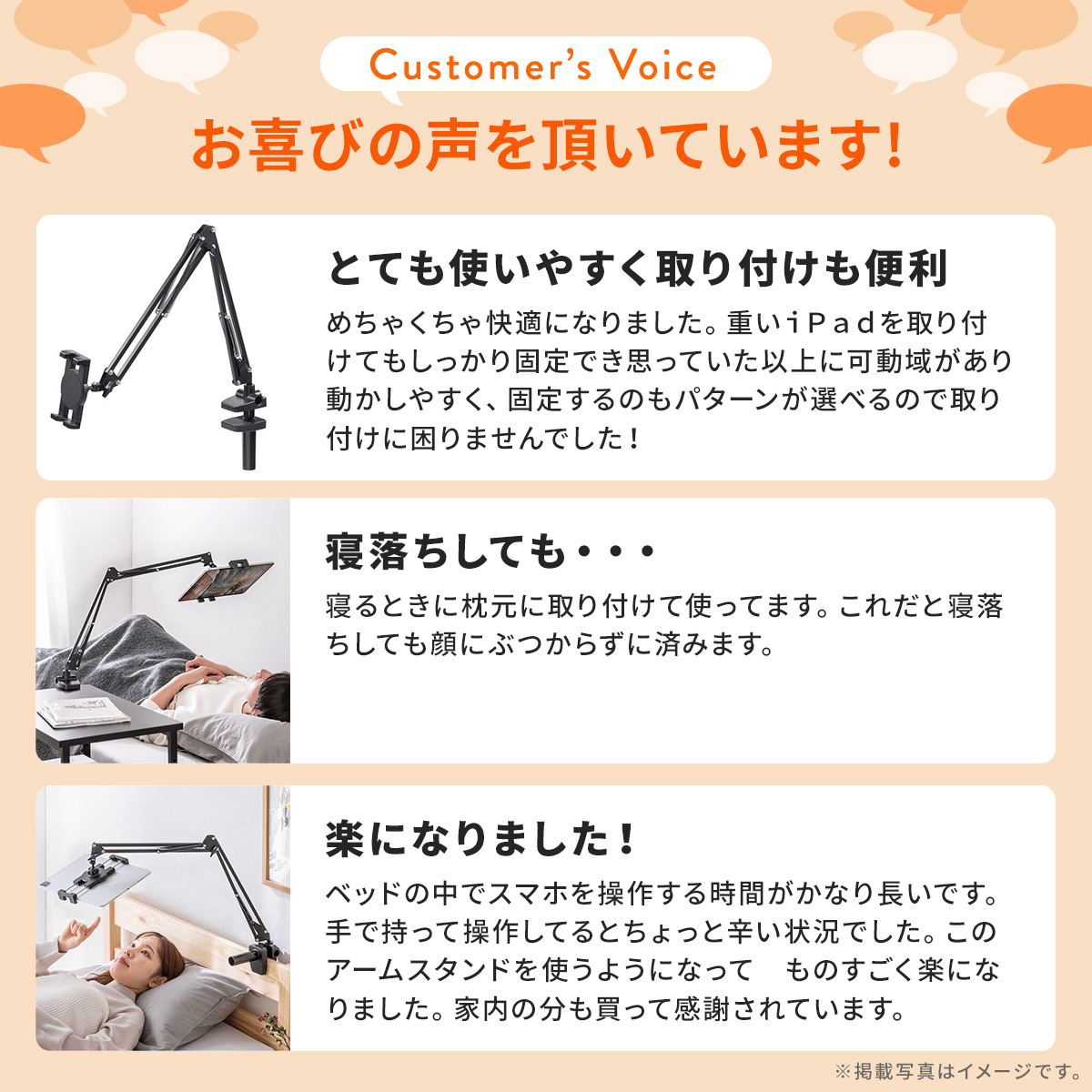 タブレット アーム スタンド 寝ながら ごろ寝 スマホ アームスタンド クランプ 固定 設置 取付 3関節 角度調整 調整 ベッドサイド 360度回転 100-LATAB021