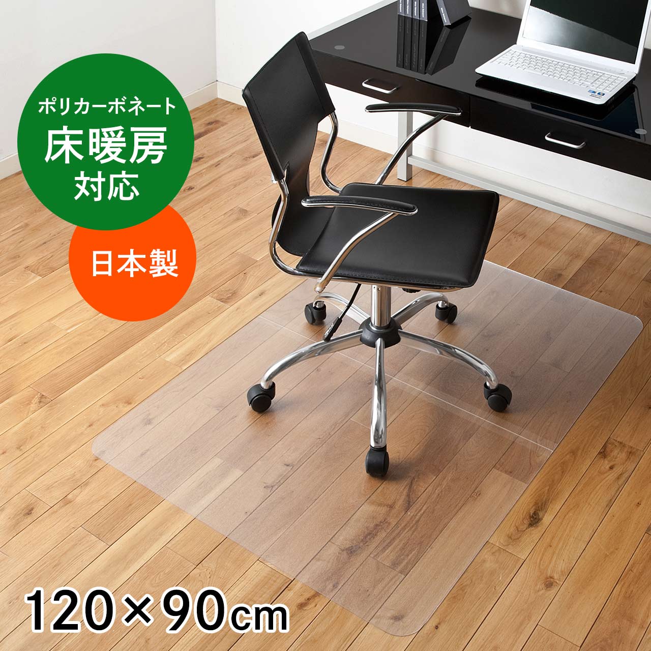 ●イスのキャスターによる床のキズを防ぐ厚さ2mmのポリカボネート製のチェアマットです。