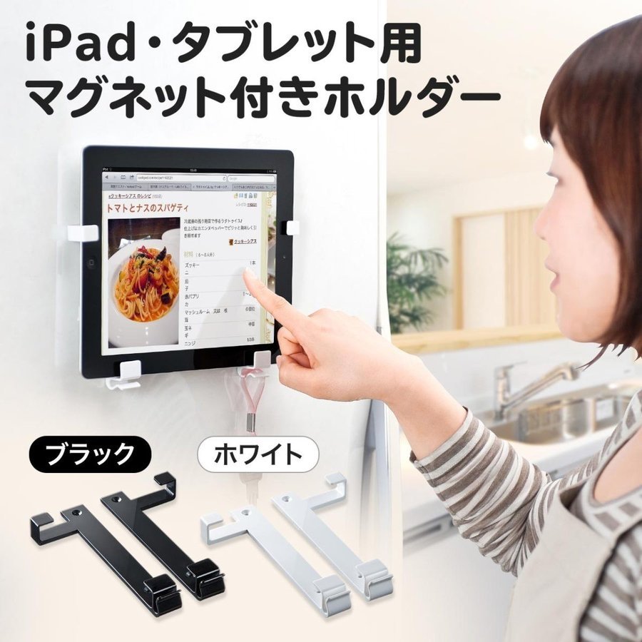 ●iPadやiPad mini、Nexus7などの7〜11インチのタブレットPCを、冷蔵庫などにマグネットで取り付けができるホルダーです。
