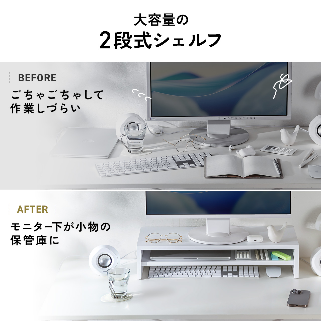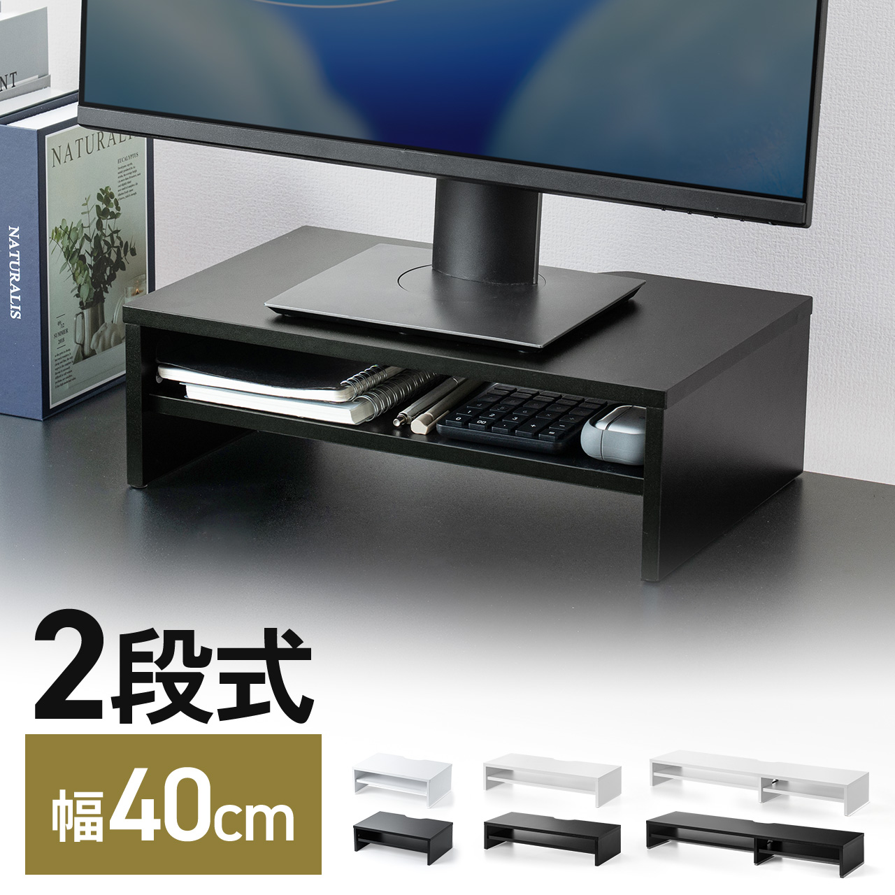 モニター台 2段式 幅40cm 机上台 モニター下収納 2段収納 木製 100-MR234
