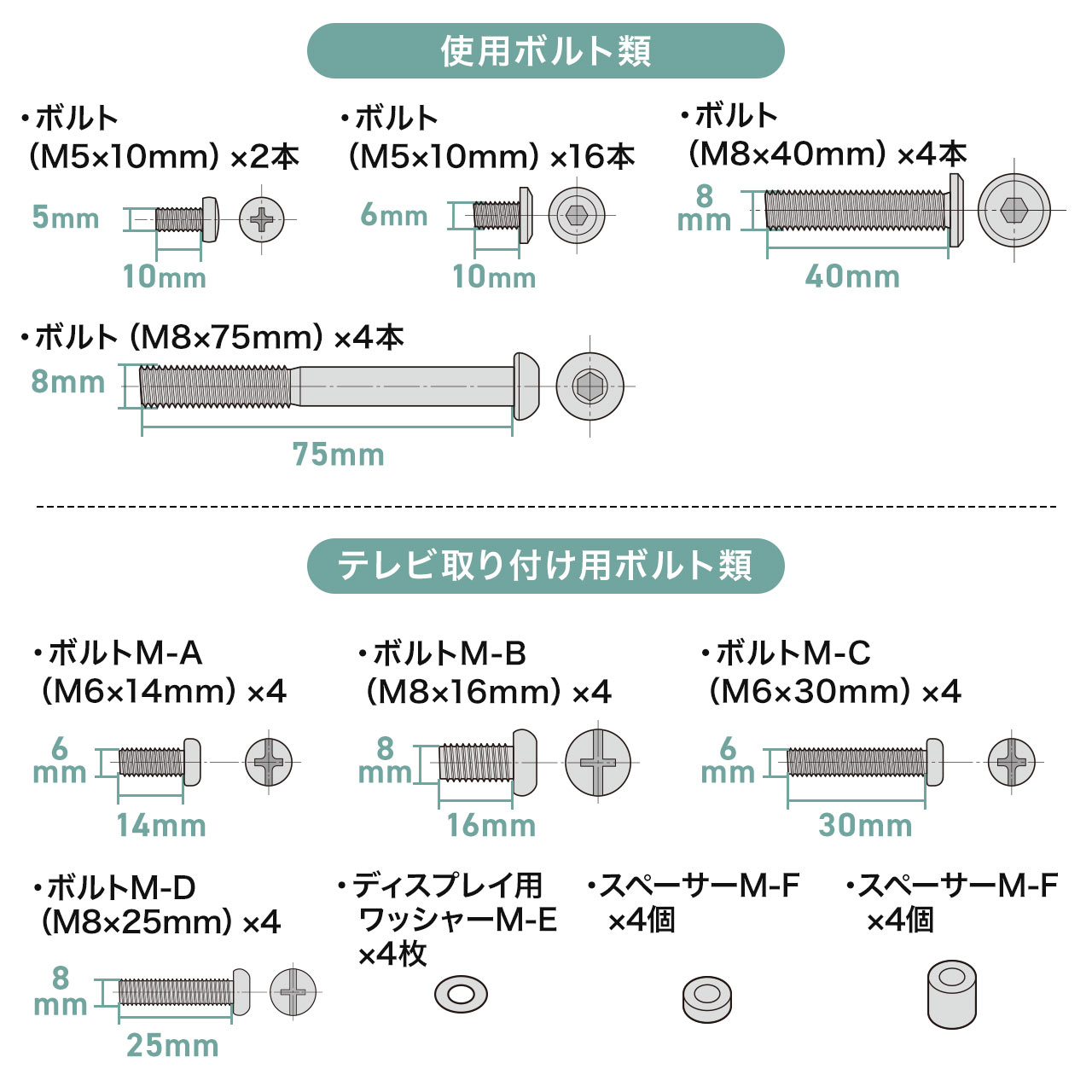 ■付属品:ディスプレイ取付けねじ(M6×14、M8×16、M6×30、M8×35)各4本