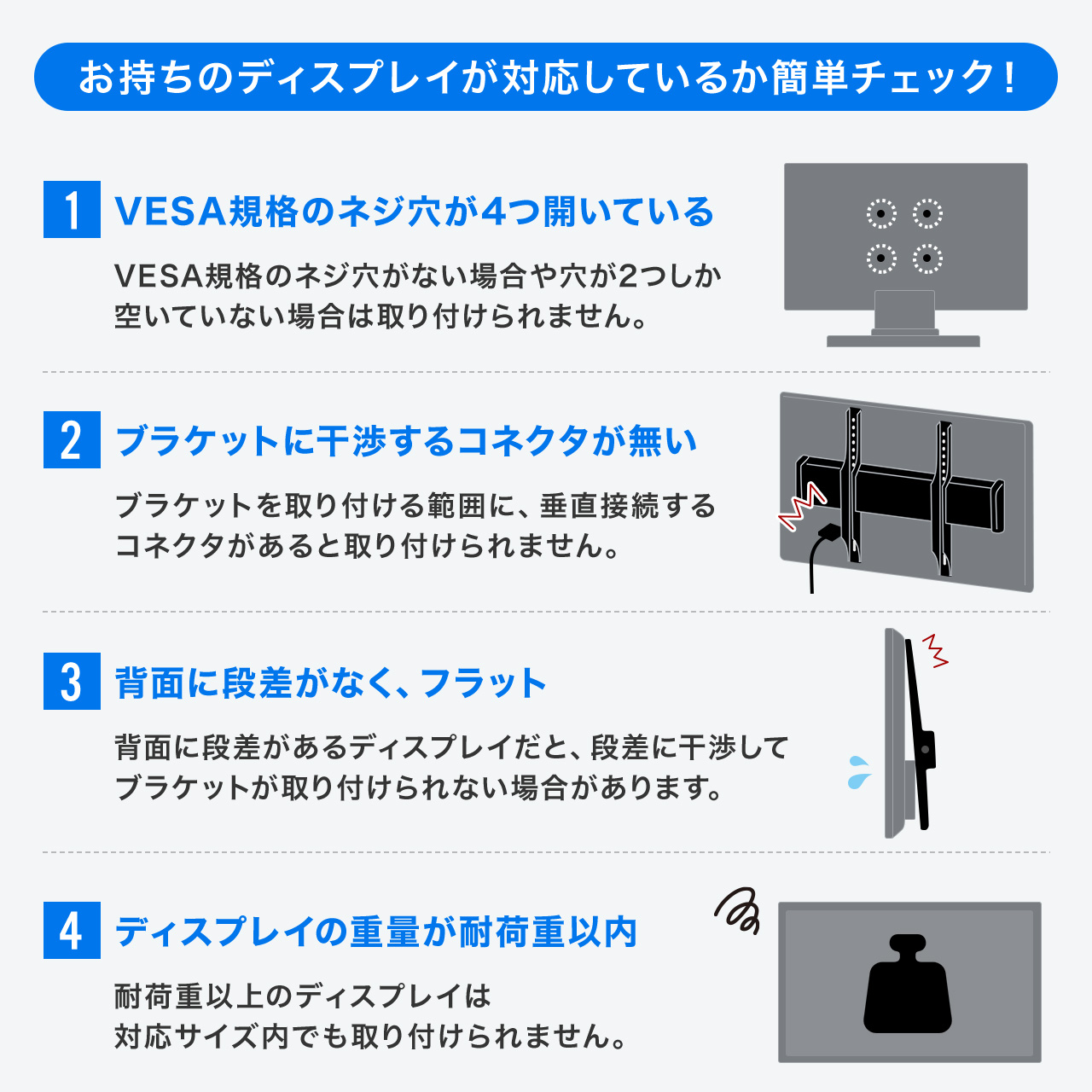 サイズがW660×H435mm以上、40kgまでの65型までのディスプレイ・モニター