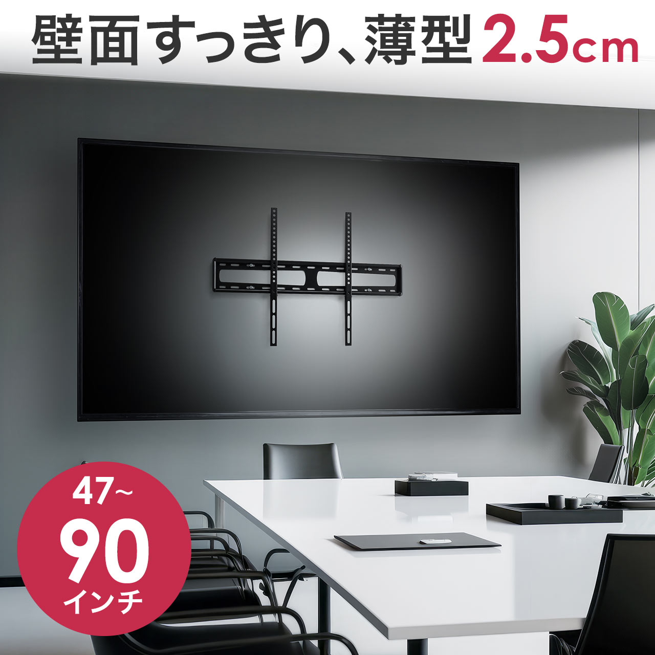 100×100、100×200、100×300、200×100、200×200、200×300、200×400、300×100、300×200、300×300、300×400、400×100、400×200、400×300、400×400、600×200、600×300、600×400搭載で、60kgまで90インチまでのディスプレイ・モニター