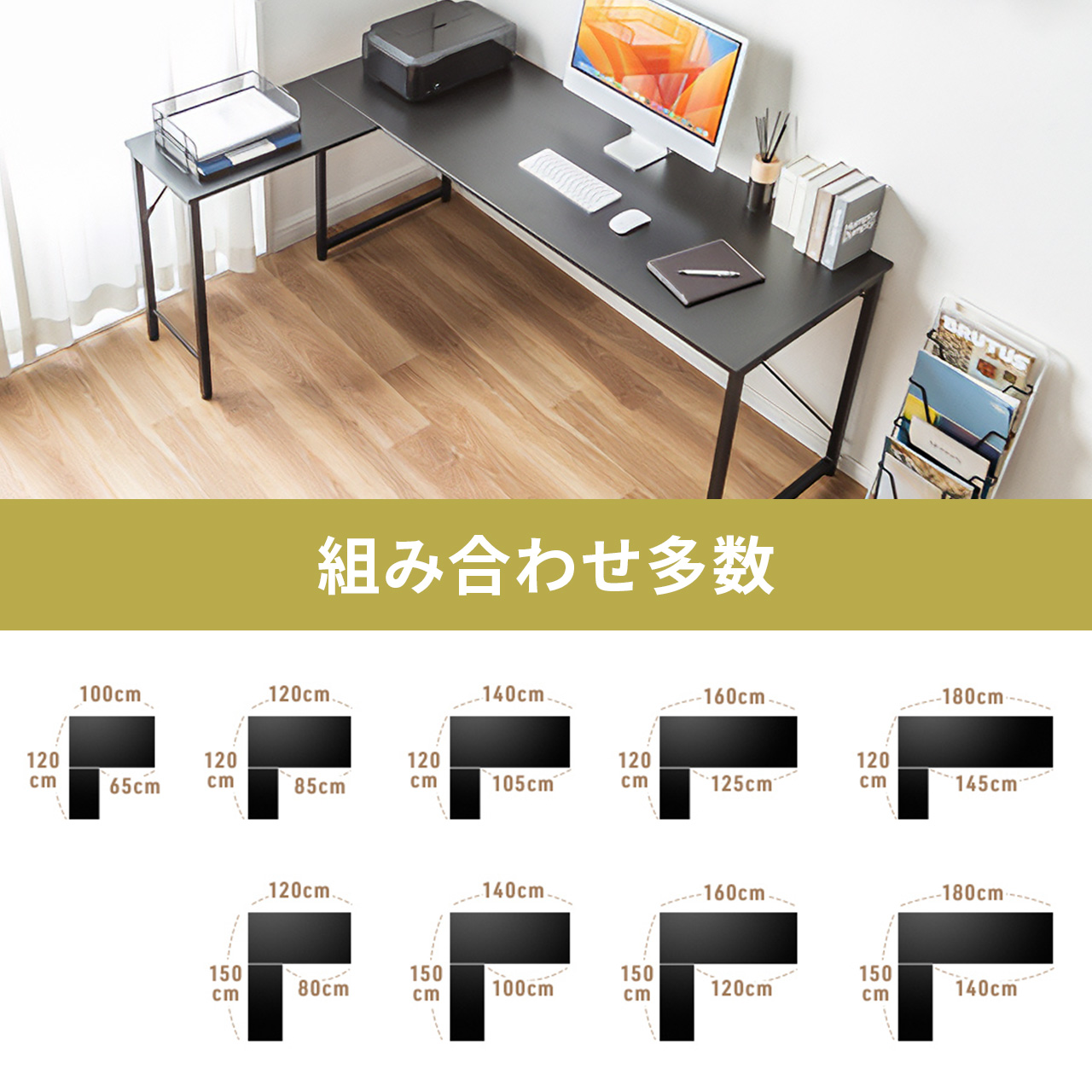 シンプルデスクとサブデスクを組み合わせたL字デスク。ボルトで固定できるのでずれることもなくしっかり固定可能。足元のフレームをなくしてゆったり使える仕様。【WEB限定商品】