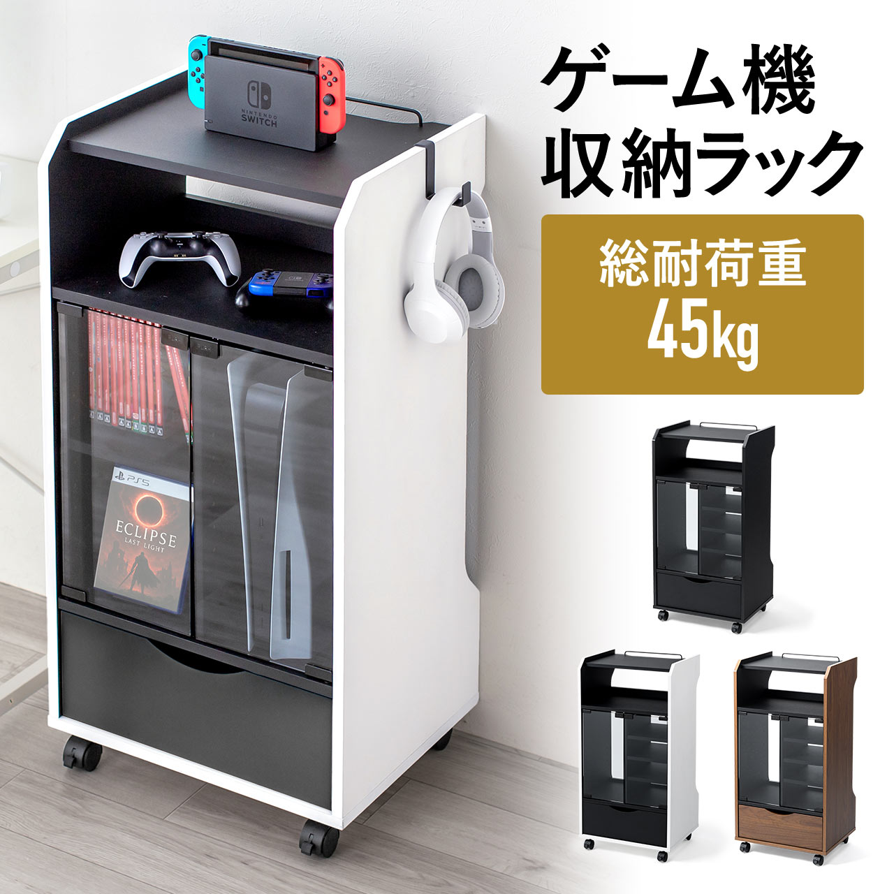 ゲームラック ゲーム機 ラック PS5 PS4 Switch 収納棚 おしゃれ ガラス扉 引き出し キャスター付き コントローラー ルーター収納 ゲーミングラック 200-CB066