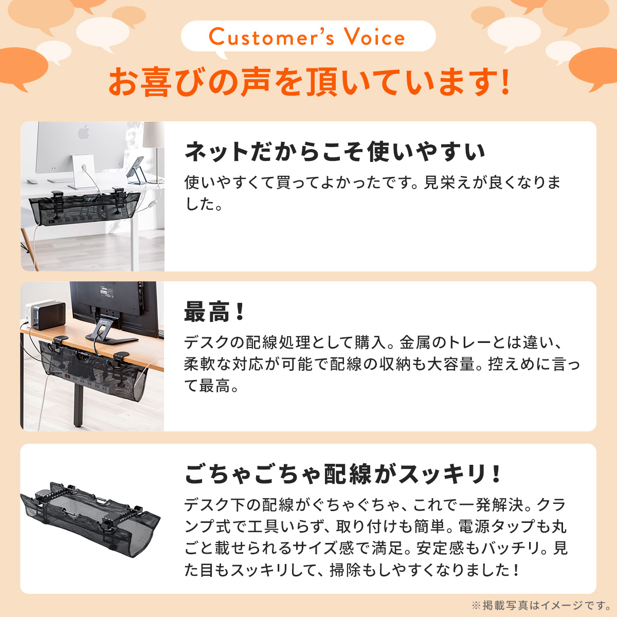 ケーブルトレー デスク下 配線トレー ケーブルオーガナイザー クランプ固定 メッシュ 整理 配線隠し コード 収納 タップ 机 ケーブルラック 幅62cm 200-CT007