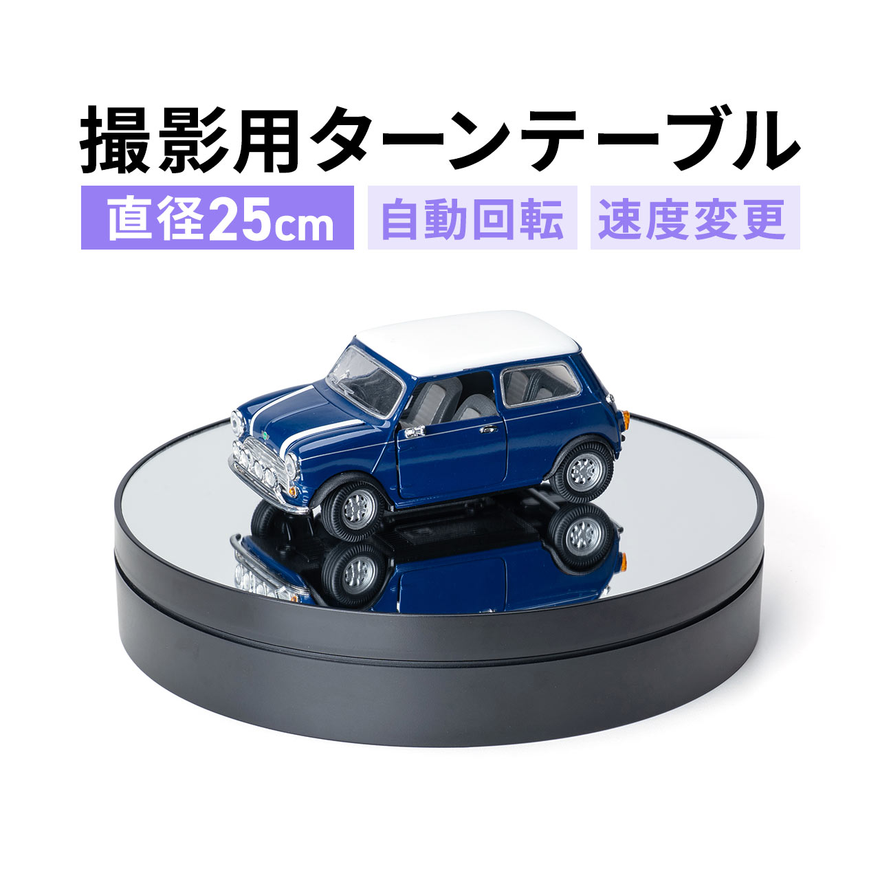 回転台 電動 直径25cm ターンテーブル 鏡面 自動 撮影 展示 フィギュア ジュエリー ディスプレイ スタンド 360度回転台 速度2段階 回転方向切替え 200-DGCAM046