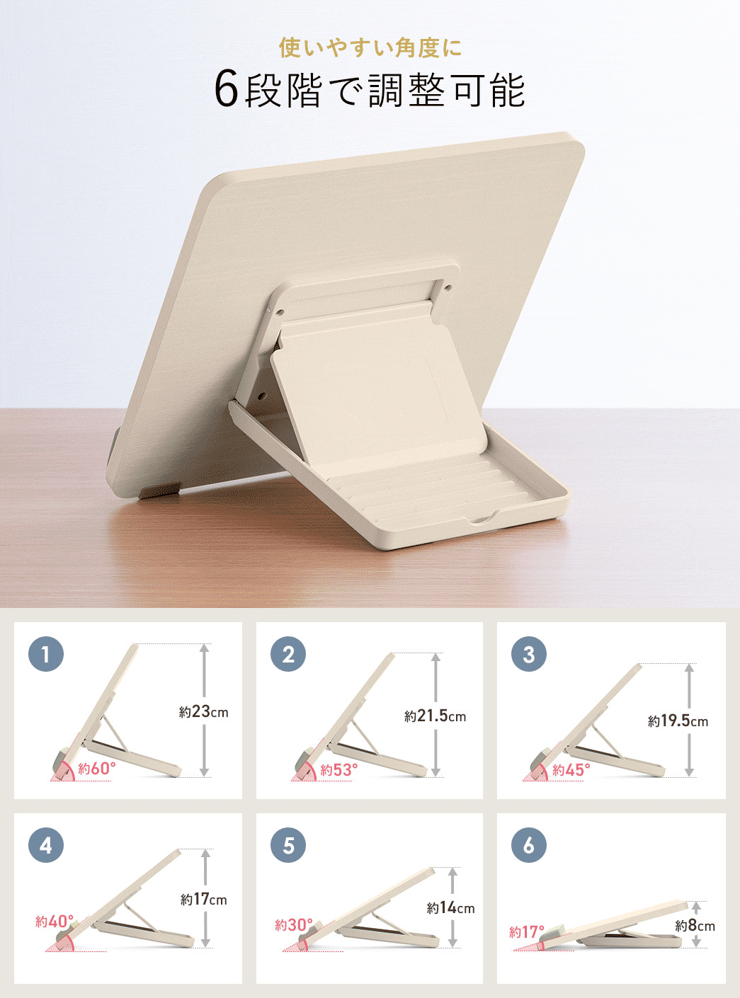 ・使いやすい角度に6段階で調節可能