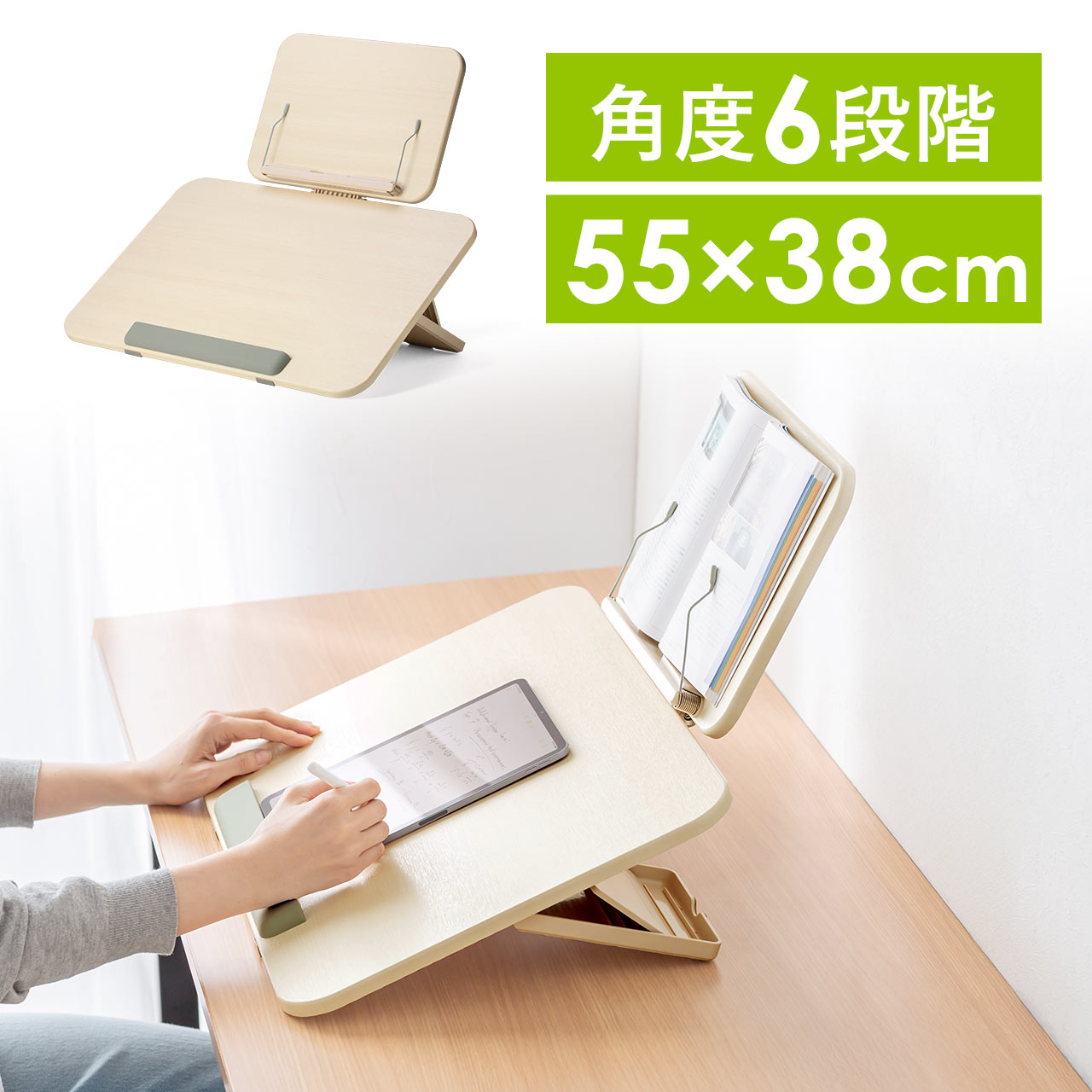 使用時/約W55.1×D38×H8.5・14.5・18・21・23・25cm(ブックスタンド含まない)