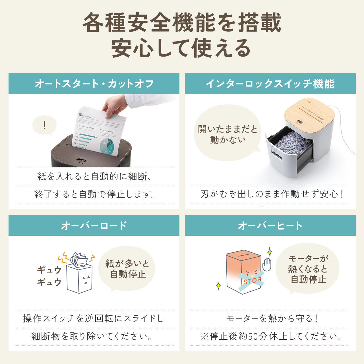 ■定格細断枚数:紙/4枚 ※A4コピー用紙64g/平方メートルが目安です。