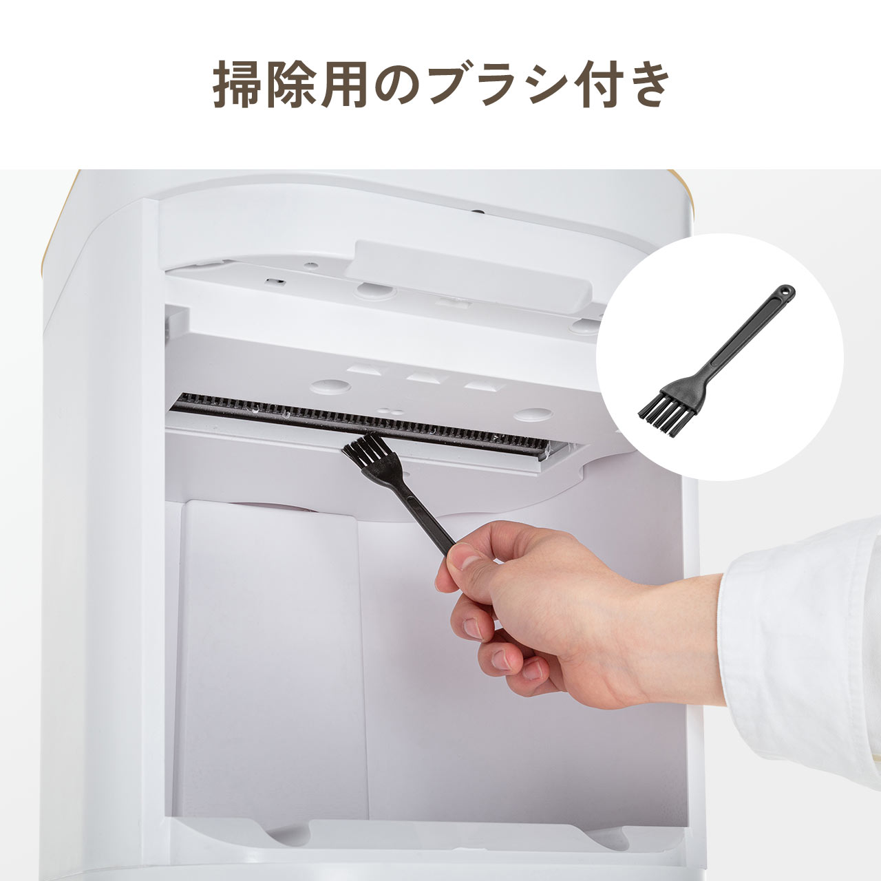 ※シュレッダーの刃の部分に用紙などの細断くずが付着している場合がありますが、全品検品を行なっているため、