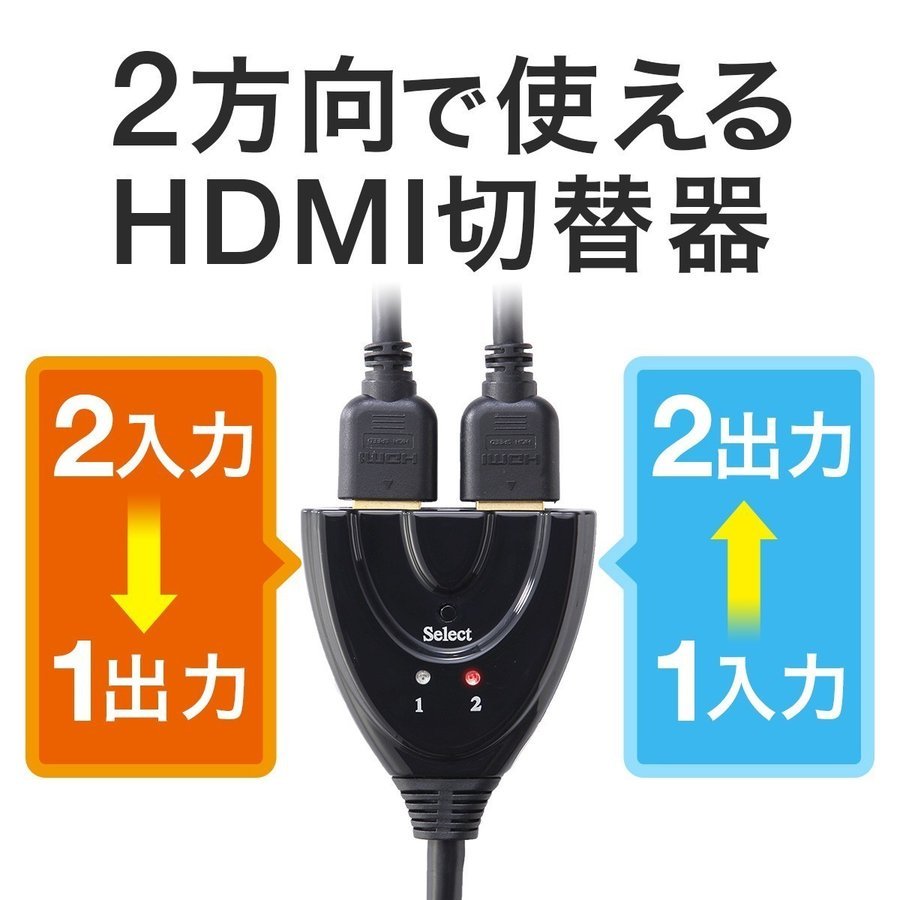 ●HDMI機器2台を切り替えて1台のテレビへ出力、またはHDMI機器1台を切り替えて2台のテレビやプロジェクター等に切り替えて出力できる双方向対応HDMIセレクターです。
