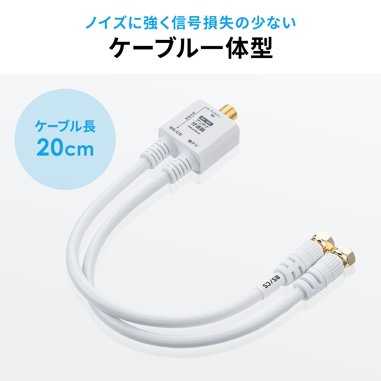 アンテナ分波器 4K 8K 放送 対応 地デジ BS/CS 分離 分ける ケーブル一体型 20cm ネジ式 コネクタ F型 テレビ チューナー レコーダー コンパクト 500-AT003K