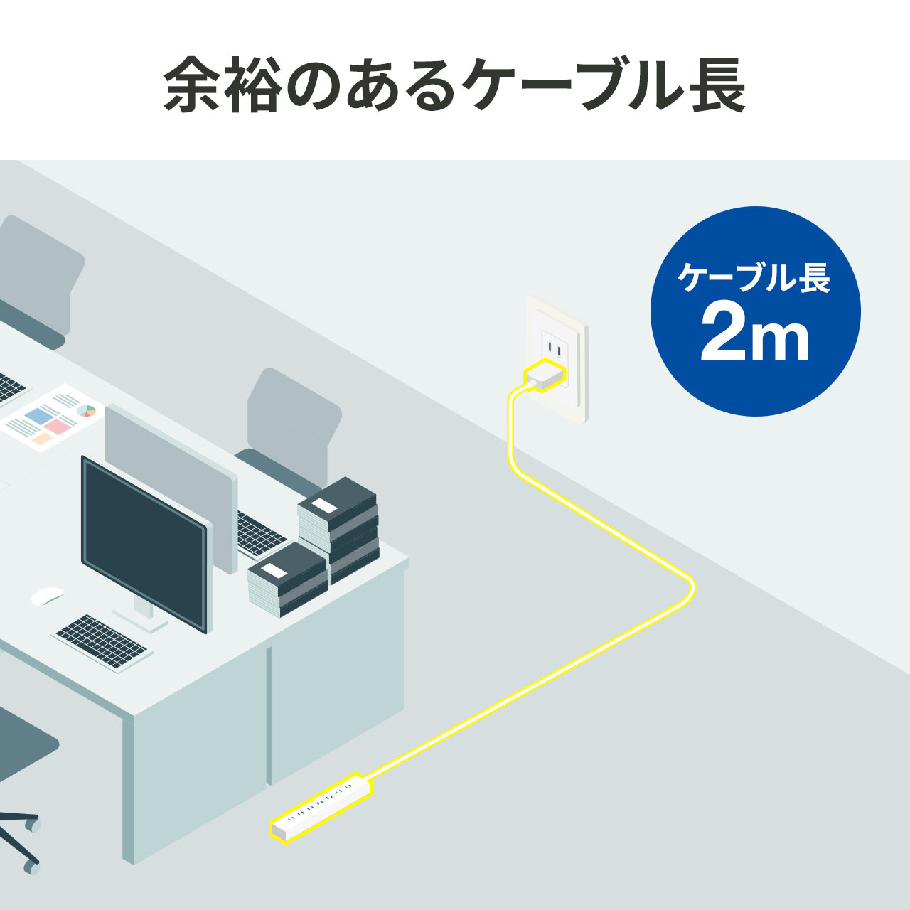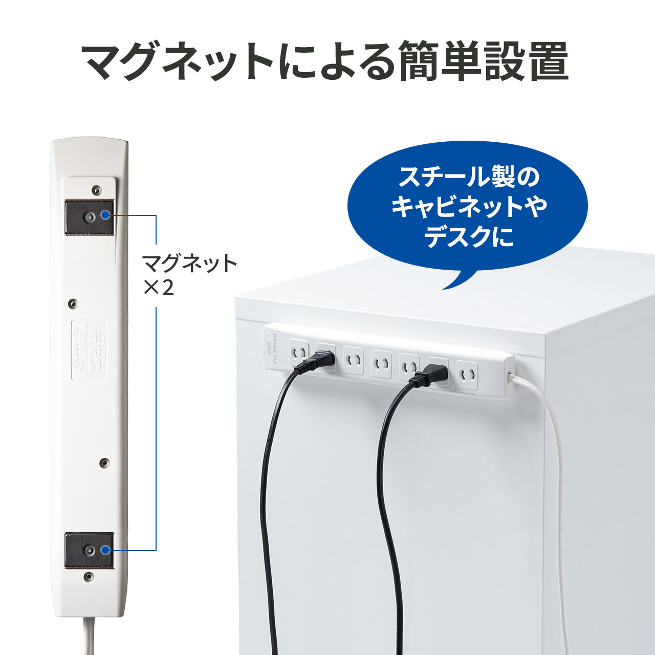 電源タップ 延長コード 2m コンセント タップ テーブルタップ マグネット 固定 抜け止め 雷ガード 一括スイッチ 節電 7個口 2個セット 700-TAP033--2