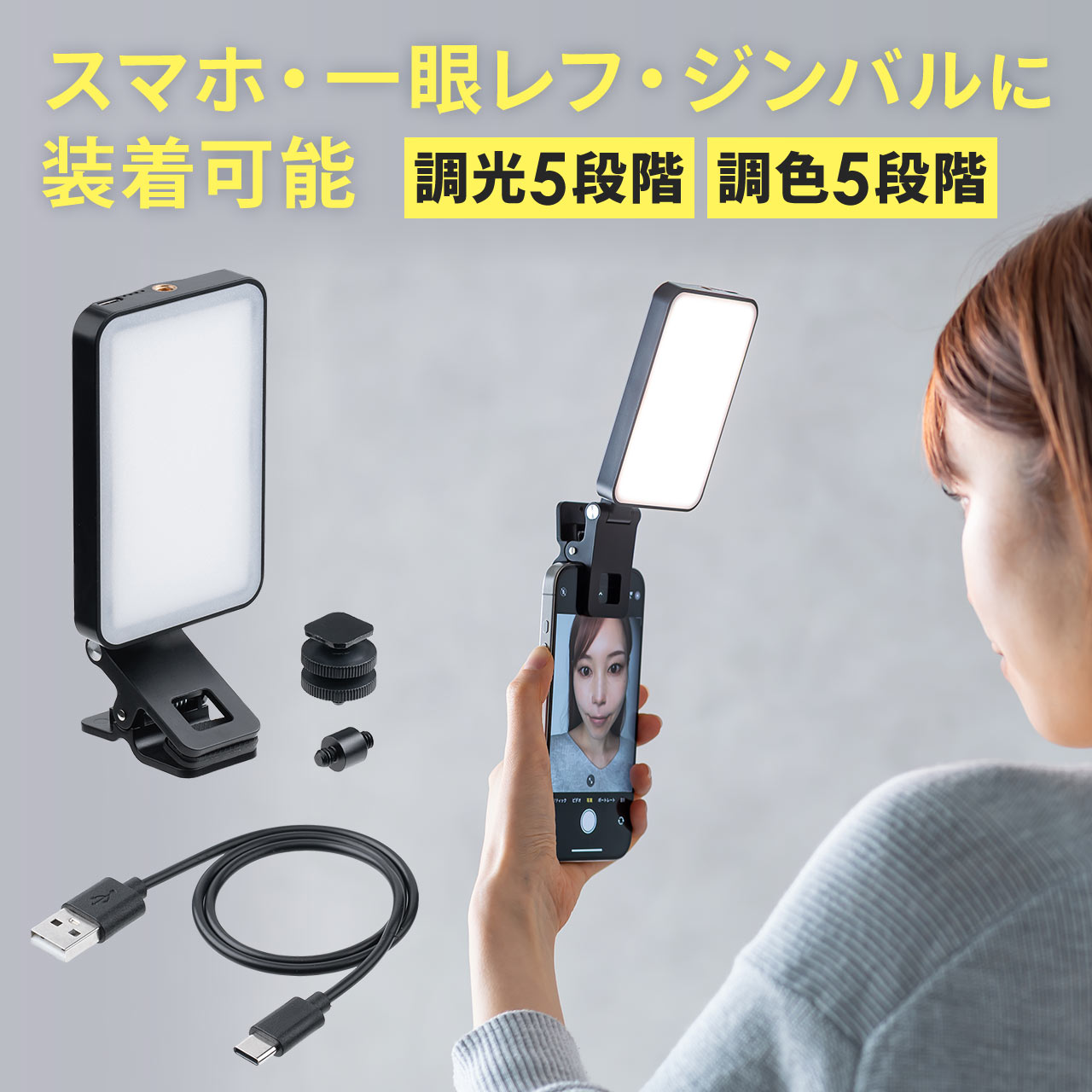 LEDライト 撮影用 作業灯 ライト 小型 充電式 ストリーミングライト クリップ スマホ カメラ 対応 三脚 取付 250ルーメン 明るさ 色温度 調整 800-LED099