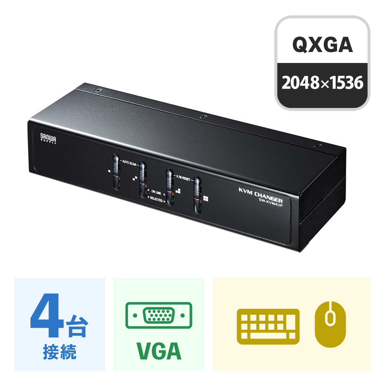 ●切り替え方法は前面パネルでのボタン切り替え、キー入力によるホットキー切り替え操作が可能です。