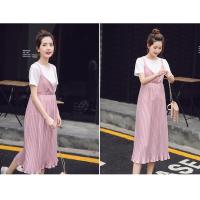 妊婦服 マタニティウエア セットアップ 上下セット 2点セット スカート マタニティ 夏服 ホームウェア ゆったり 体型カバー ワンピース プリーツ