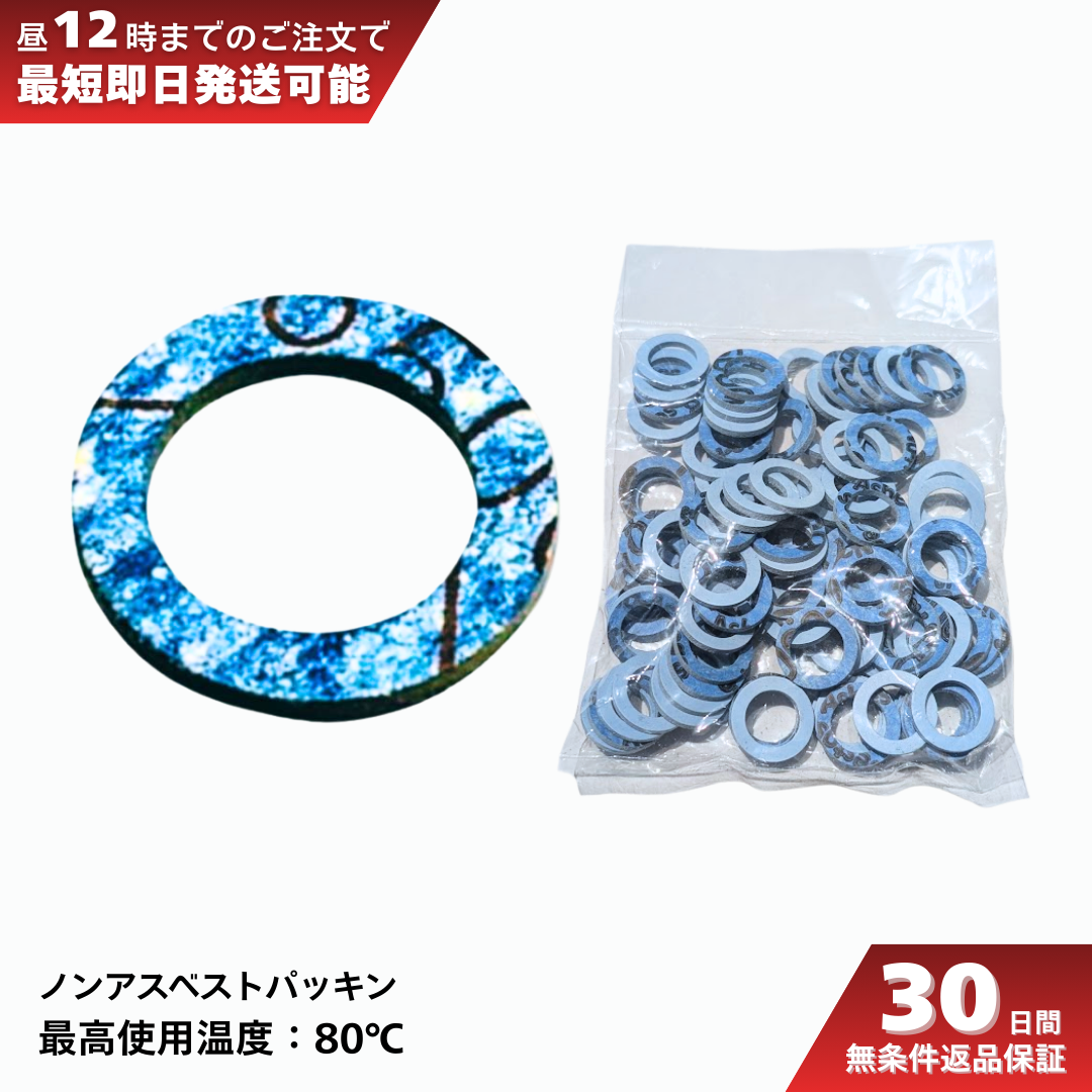 水道用フレキパイプ(パイプ径 : φ16、φ16.8)用のノンアスベストパッキン(100枚入り)です。