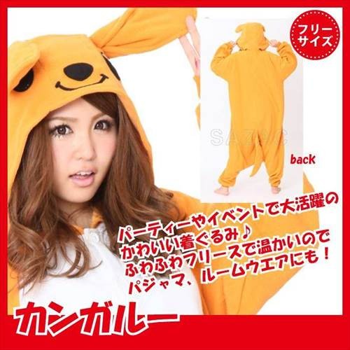 着ぐるみ カンガルー 男女兼用 フリーサイズ 大人用 パジャマ フリース ルームウエア サロペット オールインワン 部屋着 フード付 ハロウィン 仮装