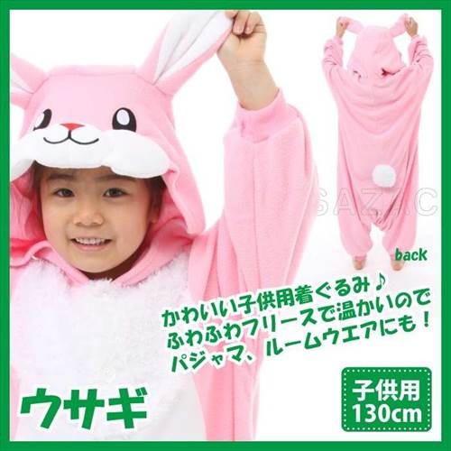 着ぐるみ ウサギ 子供用 130cm 干支 パジャマ フリース ルームウエア サロペット オールインワン 部屋着 フード付 ハロウィン 仮装 衣装 コスプレ