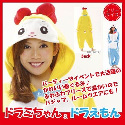 着ぐるみ ドラミちゃん 男女兼用 フリーサイズ 大人用 どらえもん パジャマ フリース ルームウエア サロペット オールインワン 部屋着 フード付 ハロウィン 仮装