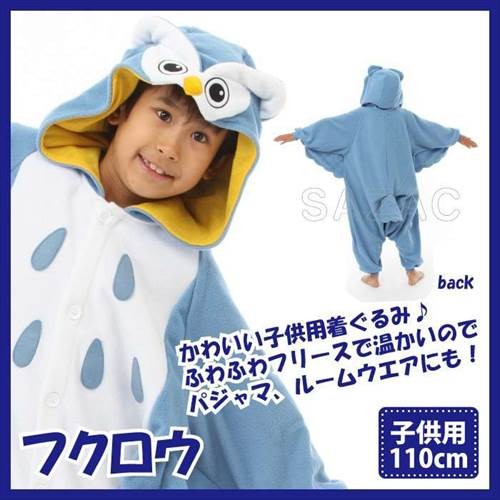 着ぐるみ フクロウ 子供用 110cm パジャマ フリース ルームウエア サロペット オールインワン 部屋着 フード付 ハロウィン 仮装 衣装 コスプレ