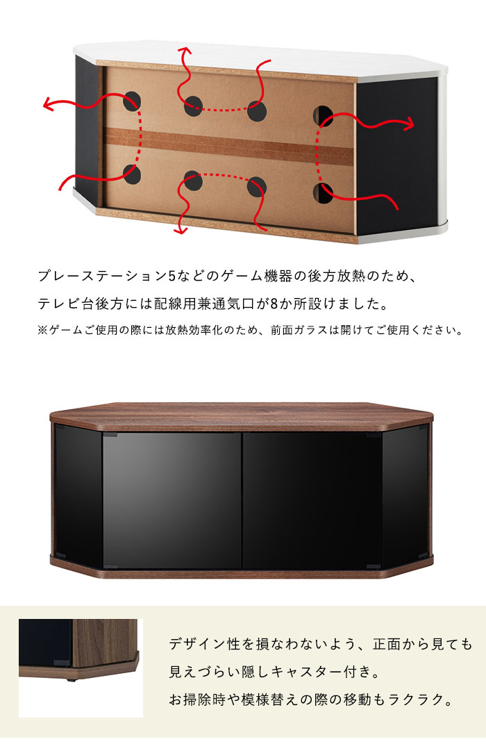 お部屋のコーナーにぴったりフィットするコーナーテレビ台。
