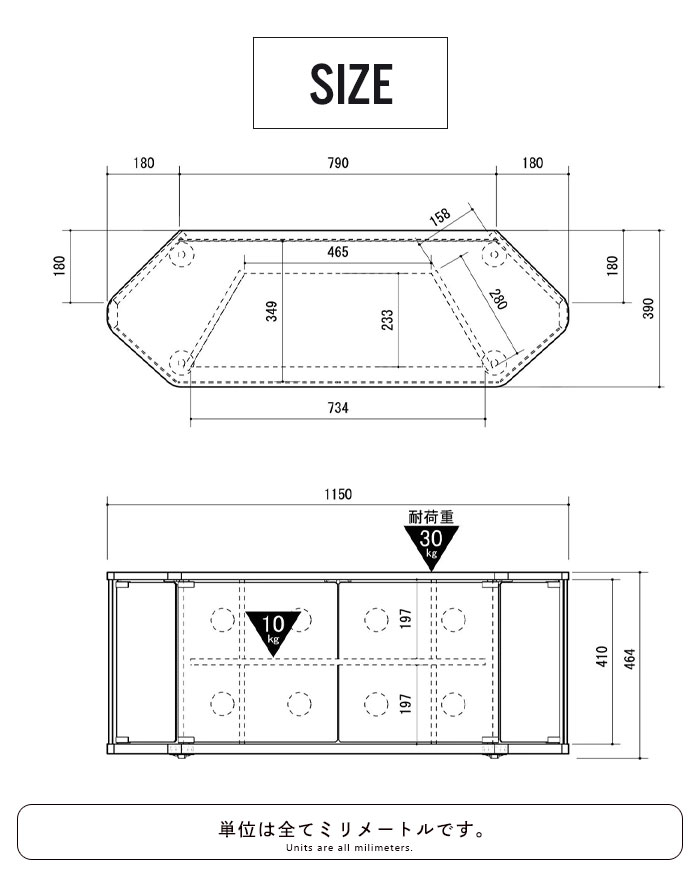 [中央部]約幅(最大)73.4・(最小)46.5×奥行最大23.3×高さ19.7cm