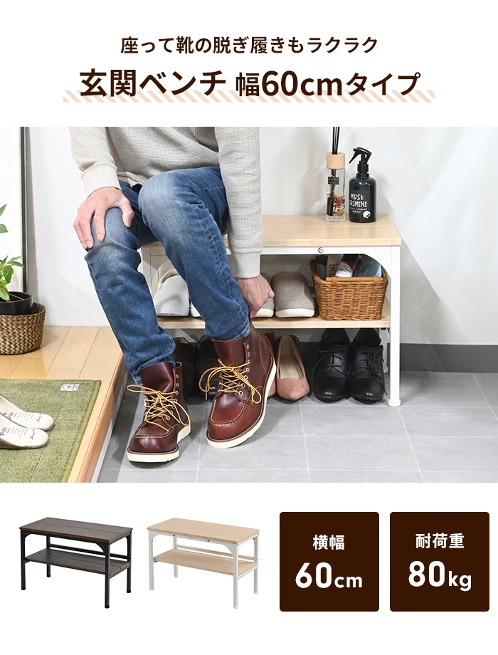 | 【棚付玄関ベンチ】 ● 幅45cm ● 幅60cm ※このページは[棚付玄関ベンチ 幅60cm]を販売しております。 |
