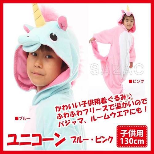 着ぐるみ ユニコーン 子供用 130cm パジャマ フリース ルームウエア サロペット オールインワン 部屋着 フード付 ハロウィン 仮装 衣装 コスプレ