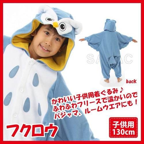 着ぐるみ フクロウ 子供用 130cm パジャマ フリース ルームウエア サロペット オールインワン 部屋着 フード付 ハロウィン 仮装 クリスマス 誕生日