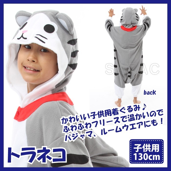 着ぐるみ トラネコ 子供用 130cm 虎ネコ 干支 パジャマ フリース ルームウエア サロペット オールインワン 部屋着 フード付 ハロウィン 仮装 衣装 コスプレ