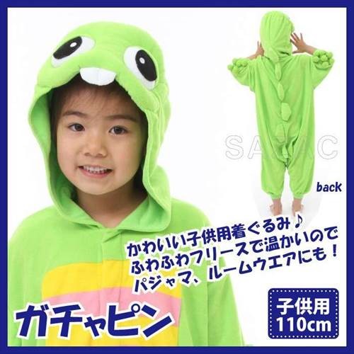 着ぐるみ ガチャピン 子供用 110cm パジャマ フリース ルームウエア サロペット オールインワン 部屋着 フード付 ハロウィン 仮装 衣装 コスプレ