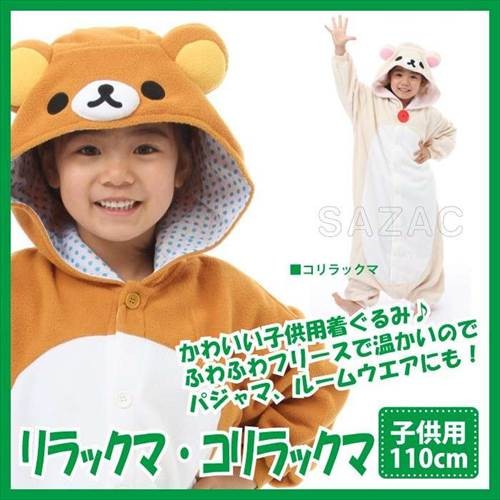 着ぐるみ リラックマ 子供用 110cm パジャマ フリース ルームウエア サロペット オールインワン 部屋着 フード付 ハロウィン 仮装 衣装 コスプレ