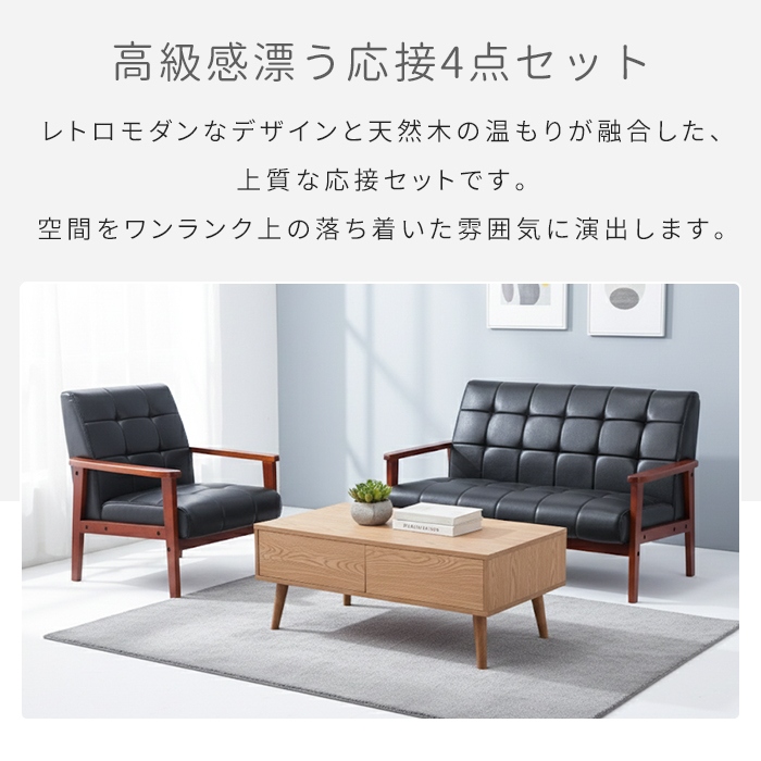 | 【ラニットソファ】 ● 一人掛け ● 二人掛け ● 応接4点セット ※このページは[ラニットソファ 応接4点セット]を販売しております。 |