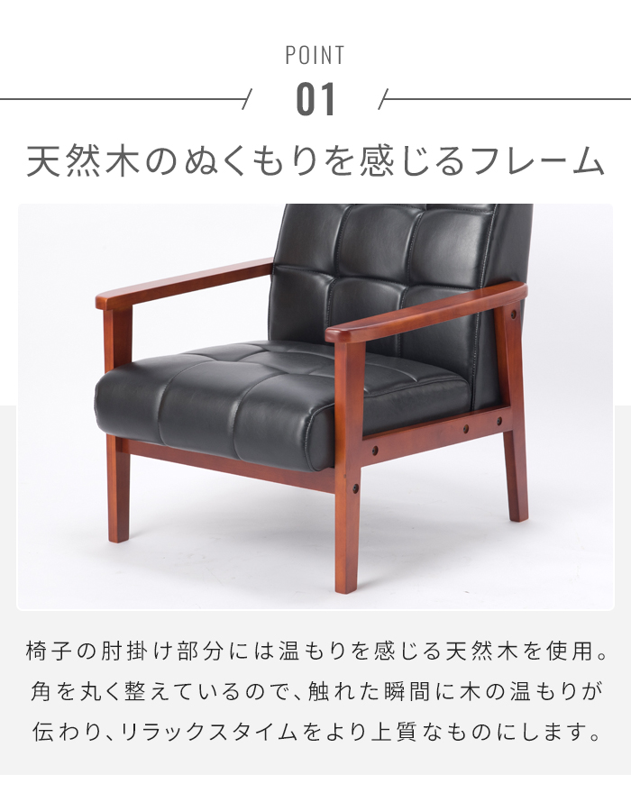 | 一人掛けソファ×2・二人掛けソファ×1・ガラスセンターテーブル×1のお得な応接4点セット。 待ち合いスペースやロビー、エントランス、飲食店などさまざまなシーンで活躍します。 天然木のぬくもりと生地のコーディネートが魅力のソファ。 座面、背もたれはオールシーズン快適に使えるレザー素材。 座面までの高さは38cm、肘までの高さは49cm、横幅の内寸は108cmです。 また、肘フレームには天然木を使用しており、優しい肌触りで見た目もやわらかく。 床へのキズを軽減するフェルトも付属しています。 |