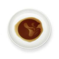 白いお皿に醤油を注ぐと、かわいいしぐさの白黒ネコが現れます♪