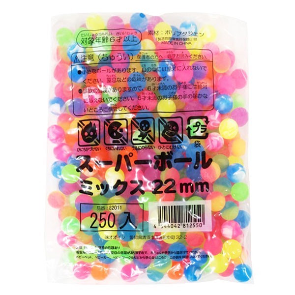お祭りの季節に大活躍!きれいな柄や色のスーパーボール!22mmボール250個入りです。
