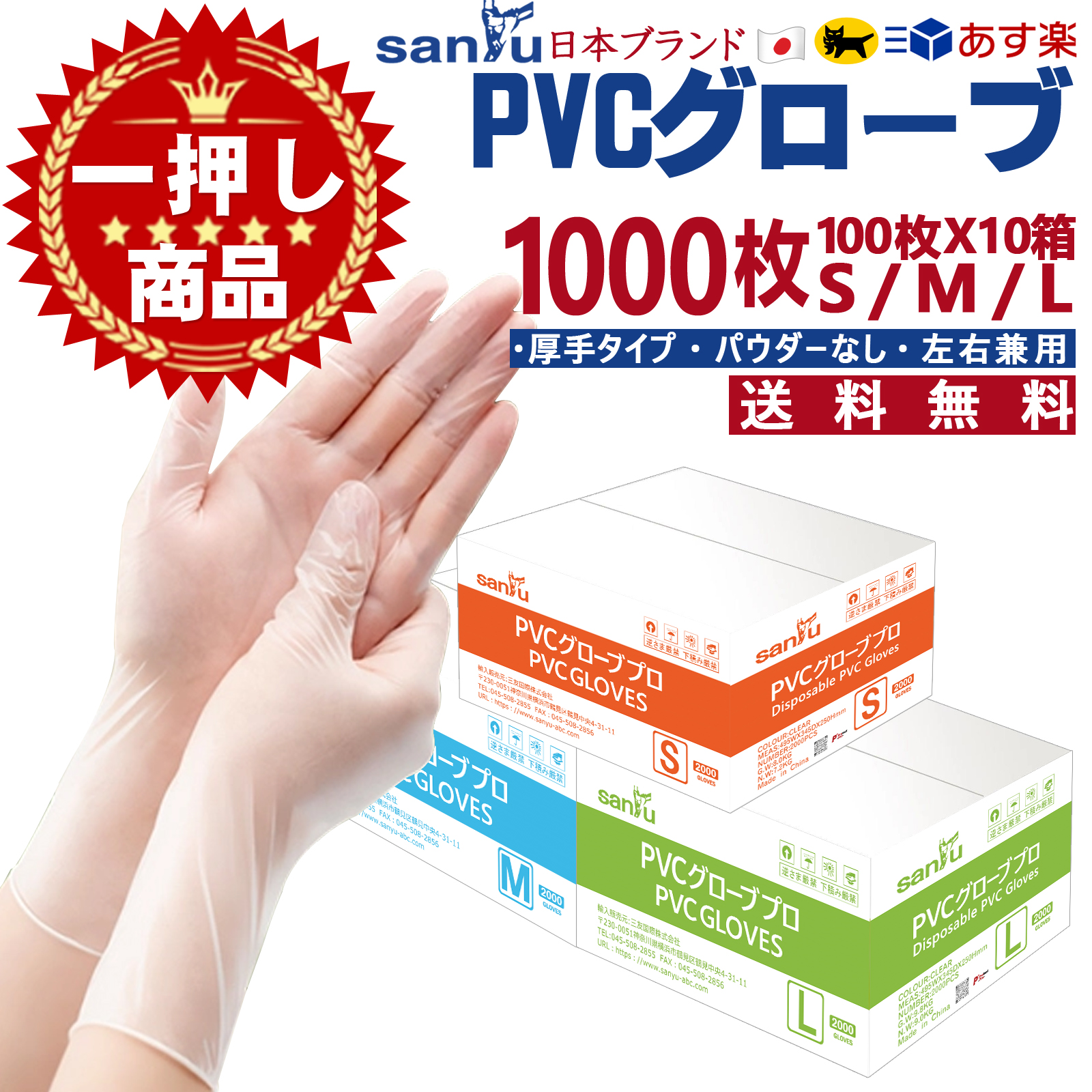 \1,000枚 PVCグローブ/ pvc手袋 s m l ビニール手袋 使い捨て手袋 プラスチック手袋 法人 業務用 まとめ買い 最安値 100枚入×10箱 スマホ対応 掃除 透明 薄手