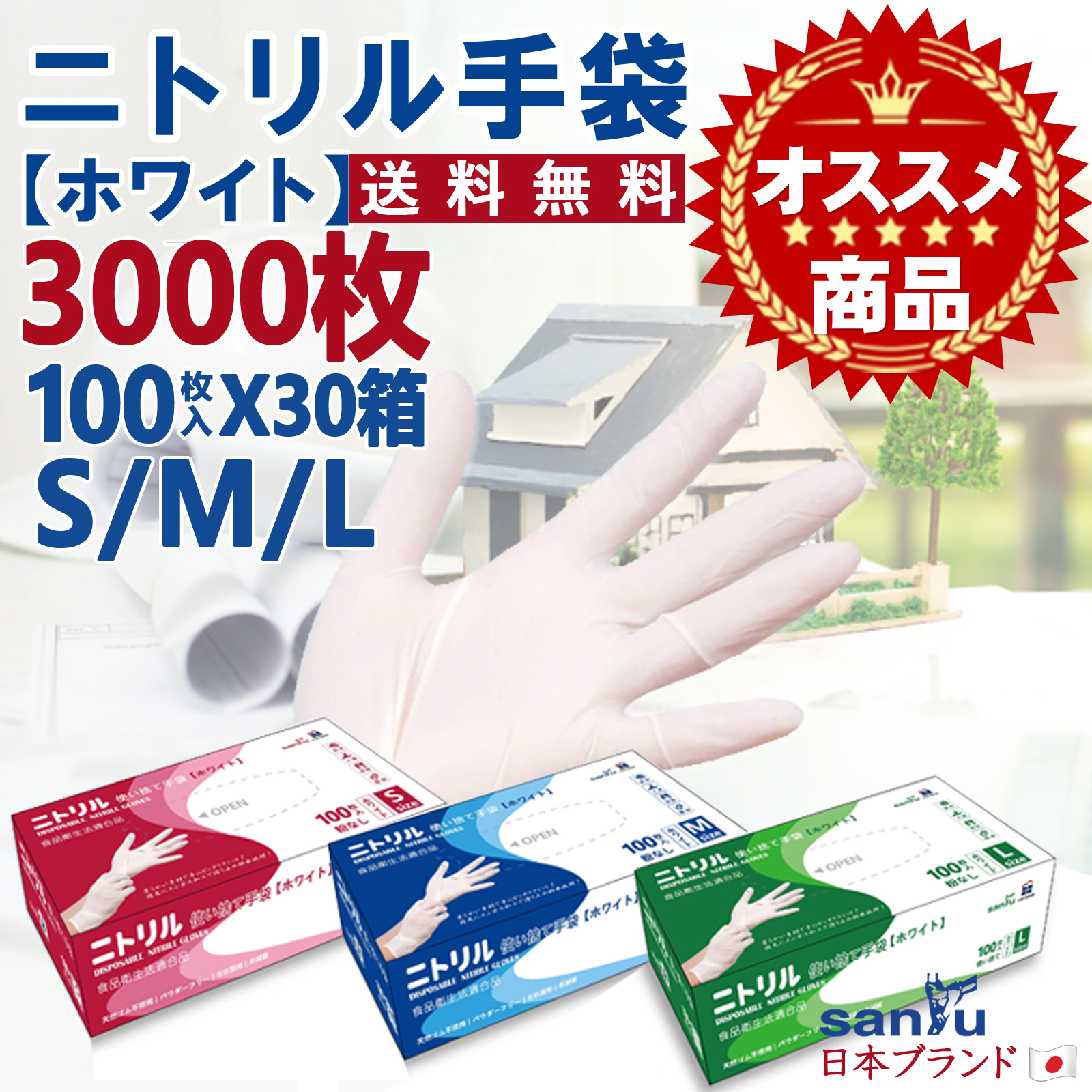 \3,000枚/ニトリル 手袋 白 粉なし パウダーフリー 使い捨て ニトリルグローブ ホワイト 介護 看護 まとめ買い 法人 業務用