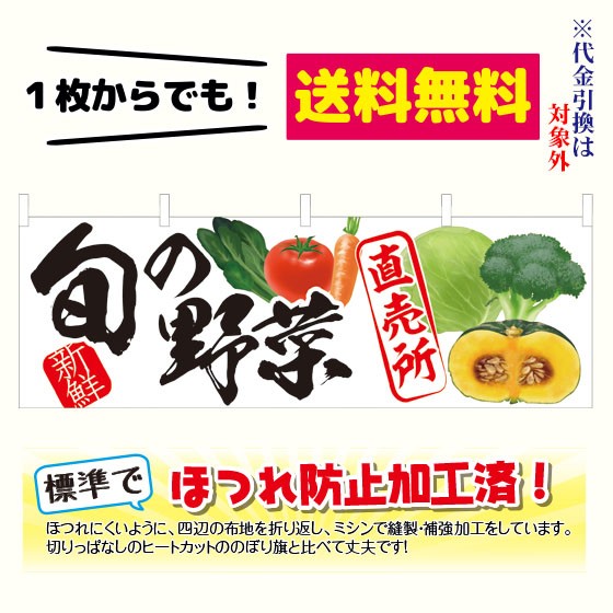 [少量生産既製品] 旬の野菜 直売所 横幕(ポンジ:600×1800mm 四方三巻縫製・上部チチ有)