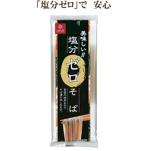 食塩不使用の乾麺です。塩分が気になる方のために開発しました。通常、そばを茹でると茹で湯に食塩が溶け出しますが、実は完全には抜け切ってはいません!!食塩不使用のこの商品ならば 「塩分ゼロ」で 安心して召し上がっていただけます。おいしさはそのままに食塩不使用なので、そば湯も楽しめます。