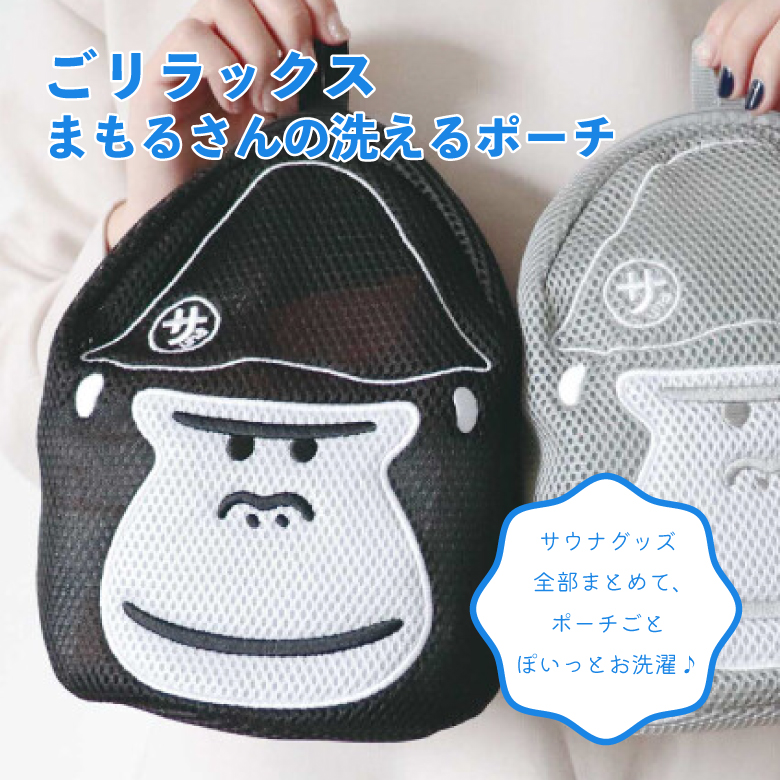 ごリラックス まもるさん 洗えるポーチ サウナポーチ メッシュ素材 小物入れ お風呂バッグ サウナ 銭湯 温泉 ジム 収納 小物入れ