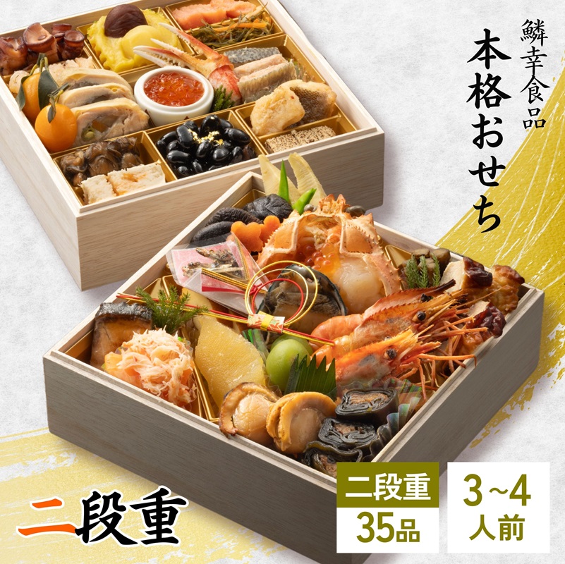 蛸柔らか煮/南蛮海老塩辛/金団/栗渋皮煮/栗甘露煮/たらこ昆布〆/松前漬け/金柑蜜煮/鶏八幡巻き/いくら/本ズワイガニポーション/秋鮭西京焼き/牡蠣しぐれ煮/タラバガニ新丈/黒豆金箔飾り/あいなめ南蛮漬け/真鱈子新丈