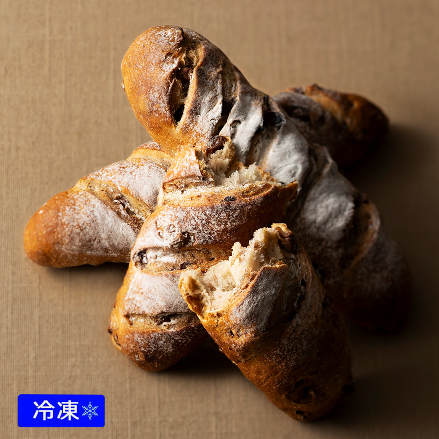 フランス産小麦を使用したカンパーニュ生地に、胡桃とレーズンを混ぜ、外はカリッと中はしっとりとした食感に焼き上げました。
