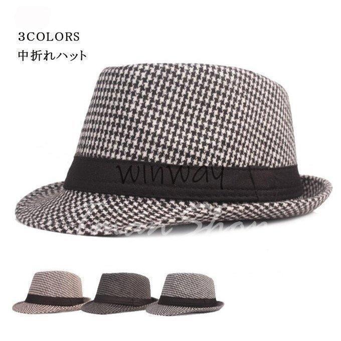 中折れハット 帽子 メンズ 大人 カジュアル 千鳥柄 おしゃれ 中折れ帽イギリス風 贈り物 プレゼント 秋冬 新作